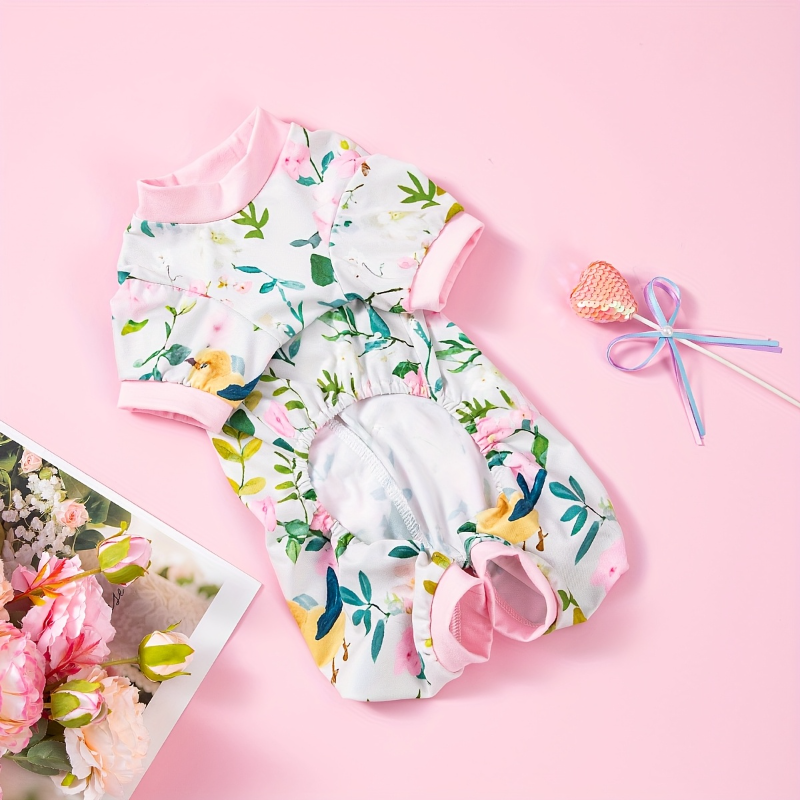 Bring bold style to your pup’s wardrobe with this gorgeous lightweight Floral & Pink Ruffled Bow Dog Romper — a chic and comfy all-season outfit that combines fashion and function. This playful body suit features light pink ruffles and two pink bows, and soft polyester fabric for effortless wear from spring through fall. Perfect for lounging, playtime, or showing off your dog’s fierce personality.